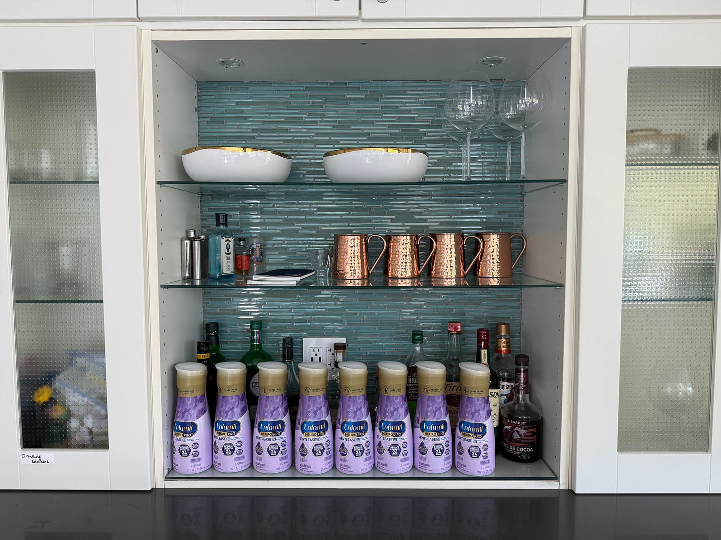 This picture pretty much sums up our life right now: Formula > Alcohol.