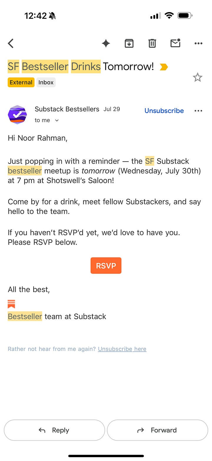 Update 1: I got invited to a Substack Bestsellers event.