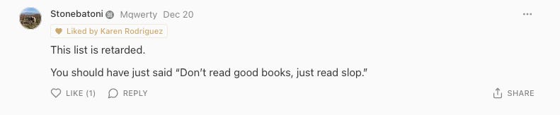At least some of the criticism of that "Famous Classics You´re Allowed to Skip" post stems from the fact that it was clearly written by AI.